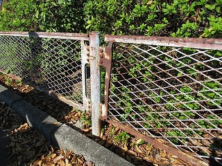 フェンスに一部破損、全体的にサビが多い