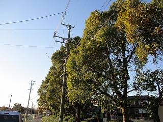架空線と樹木が干渉している